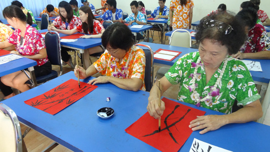 值此泰国宋干佳节之际,勿洞孔院举办此次活动受到了勿洞市民的积极响应。此次宋干节活动包括敬老祈福、手编中国结、中国扣、中国水墨画体验以及宋干节泼水等环节。一开始的祈福敬老仪式就温暖了参加庆祝活动的每一个人的心。大家把充满爱和祝福的幸运之水洒在对我们关爱之至的长辈手上,祝愿每一位长者在新的一年里健康长寿、幸福安康。