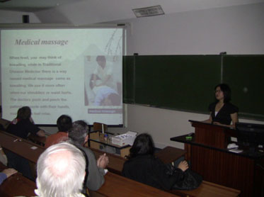 中国周期间,来自中国暨南大学及世界其他地方的专家教授们为罗德斯大学的师生做了一系列精彩的讲座。来自爱丁堡大学的非洲问题研究专家Kenneth King教授用鲜活的数据向听众们介绍了中国对非洲高等教育的支持和援助以及中国政府对非洲援助的一系列政策;荷兰著名的乌特列支大学人权研究院的邹咪咪从儒家文化的角度解读了中国的人权观念,劝谕人们要用互动的方法来认识和推动中国人权发展而不应把西方的观念强加给中国;澳洲新南威尔士大学的于海清博士则用翔实的案例介绍了现代科技和网络如何改变了中国人生活的情况;暨南大学的几位年轻教师的精彩演讲博得了众多观众的喝彩,秦佳佳博士首次在罗德斯大学向听众们介绍了中医药文化,并在座无虚席的演讲厅现场演示了拔罐、针灸等中医保健和治疗方法,热情的学生纷纷自告奋勇充当受试,亲身体验中医保健疗法的神奇魅力;李静博士向热情的南非听众介绍了中国非政府组织的发展以及在民间慈善事业中所起的重要作用;杨洪波博士则用丰富的图片和数据向听众介绍了中国穆斯林宗教和社会生活传统,以及所受到中国民族宗教政策保护的状况,打消了一向怀疑中国压迫宗教活动的听众心中的疑虑;尤其令人耳目一新的是来自伊丽莎白港纳尔逊曼德拉市立艺术博物馆的Melanie Hillebrand 博士关于该馆中国清代服饰及其他纺织品等藏品的生动介绍。她对中国历史和服饰文化演变的知识不仅感染了南非听众,亦令在场的中国听众发出佩服的赞扬之声。一系列的学术专题讲座不但从不同角度传播了中国文化传统与文明进步,更向师生们展示了一个高速发展的中国。