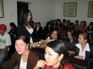 此次“中秋文化周”活动,以讲座形式为主,向大家介绍了有关中国人过中秋节的各种传统及风俗,邀请学生品尝月饼。五天的讲座活动中,吉尔吉斯国立民族大学汉语系系主任和孔子学院的吉方汉语教师也都积极参与,并对此次活动给予了高度的评价,她说,我们在这里开展如此丰富多彩的中国文化体验活动,让我们的学生更近距离的了解中国、感受中国,更能促进学生学习汉语的积极性,能吸引更多的人来学习汉语、了解中国,从而增进吉中两国人民的友谊,今后我们将给与更多地配合和支持。