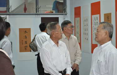 10月1日上午,泰国普吉孔子学院董里校区大学生书法展隆重开幕。董里市政议员黄谭六先生、董里客家会馆永远理事长陈铁林先生、陈天德先生、董里地区华侨教育会代表蔡庆先生、董里地区中小学汉语教师志愿者以及董里校区广大师生等200余人参加了开幕式。