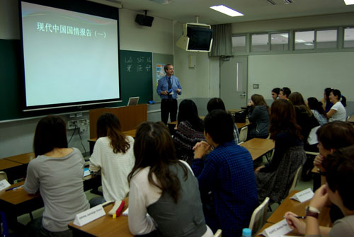 10月23日,关西外大孔子学院邀请美国学者Stephen Ramquist为在关西外大学习的欧美留学生、日本学生举办了以中国历史和文化及对现代中国的影响为主题的现代中国国情讲座。