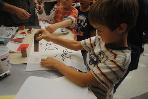 小学生在为自己的作品盖上印章 点击查看更多图片