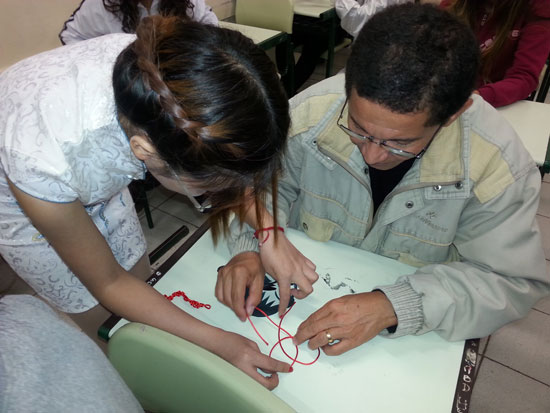 随后,汉语班的学生在操场中心布置了书法、象棋、剪纸和中国结四个方阵,将两年来学习的中华才艺亲自向同学们解释并手把手的教给他们,参加活动的师生对汉语班学生的展示表现出极大的兴趣。