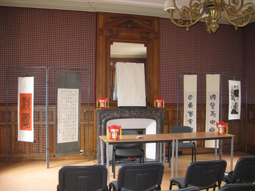 在法国拉罗谢尔市政府的支持下,拉罗谢尔大学孔子学院于2010年9月在市政府国际文化中心举办了为期三天的“中国印章篆刻艺术作品展”。本次展览早在半年前就在当地报刊和市政府发行的免费杂志上刊登了广告。展览的大部分作品是从国内邀请来的书法篆刻艺术家刘新成老师在国内多次展出的佳作。刘老师的刀工细腻,秀丽别致的篆书印章作品,有阴文有阳文,品种繁多,风格各异。琳琅满目地悬挂在展厅的四壁。许多拉罗谢尔市中国文化爱好者和当地观众被中国印章艺术的魅力所折服。走出展厅观众们无不连声称赞:中国的篆刻艺术实在太精细,太美妙了。参观这样的展览不仅是一次高水平的艺术享受,更是一次了解博大精深的中国文化的好机会。