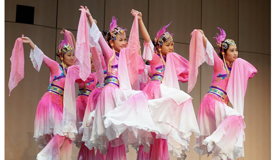演出伊始,一群身着霓裳羽衣,明目皓齿、宛若天仙的妙龄少女,轻歌曼舞来到舞台,把观众带入了《繁花似锦》的仙境。接着李光老师演唱《贵妃醉酒》,独特的声音,细腻的演唱,出神入化的表演,让观众体验到了国粹京剧的迷人魅力。王悦老师演唱的《美人手》,那特有的中国古典词曲,柔情似水的歌韵,听来宛如邓丽君在世。“在那遥远的地方,有位好姑娘……”触动了在异国他乡忘我工作的青年女教师、志愿者的心怀。还有身着中国古装黄衣、红衣的两位女大学生演绎的中国传统乐器——琵琶、笛子合奏,曲调婉转悠扬。接下来的二胡独奏、《中国功夫》等表演,都让人耳目一新,使人感受到中国传统艺术的独特魅力与表演者的精湛技艺和深厚功底。最后的压轴戏中国民间舞——群舞《蝴蝶飞》给外国朋友留下了深刻的印象,一位美国观众告诉笔者,看了那么多的中国舞蹈,就这个很特别,舞者手中舞动的方巾不停地变换颜色,让他觉得颇为神奇,不可思议。
