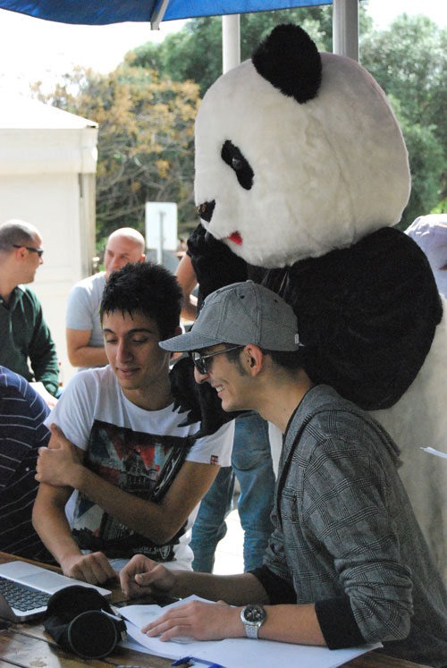我们的才艺展示把活动推向了高潮。展台这边,茶艺和书法表演同时进行,大家既能品香茗,还能用毛笔写下自己的名字,这种参与式的展示吸引了很多同学;象棋、麻将一一展开,现场杀上几盘,参观者兴趣盎然;另一边,马耳他大学的“太极协会”自告奋勇向大家展示太极拳,一招一式相当专业,令人佩服不已。厦门大学来的交换生不甘示弱,打了另外一套拳法,现场喝彩声不断。继而,一位云南来的留学生吹起了葫芦丝,轻柔细腻的旋律,圆润质朴的音色,感染了现场每一个人。