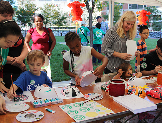 上午9时至下午2时,肯大孔院在肯塔基州列克星顿市中心的三角公园张灯结彩,开展了中国文化体验与演出活动,包括中国古筝、蒙族喉麦和马头琴、书法、国画、太极、茶艺、民族舞蹈、绘制京剧脸谱、踢毽子、抖空竹、汉语学习等十余种文化体验项目,其间还进行了古筝、中国舞、当地小学生中国鼓乐的表演等,其规模之大,文化项目之多,互动程度之频繁,表演水平之高,参与人员之广,皆创下肯大孔院的历史记录,一排大红灯笼迎风摇曳,各项活动表演如火如荼,引来众多市民饶有兴致地驻足观赏,踊跃参与,形成一道独特而醒目的风景线。市民Mike先是花了40分钟精心绘制了一个京剧脸谱面具,然后又认真地跟学太极,接着参加了踢毽子。他说:“中国文化很酷,很多样,很高兴今天有机会来见识一下。”一位当地的华裔妇女邱淑婷表示:“我有很多亲戚在大陆,也常常回中国探亲,对中国文化比较了解,可今天能在美国看到这么多非常真实的中国文化和表演,而且水平还很高,我非常惊喜,也非常感动,谢谢你们!”