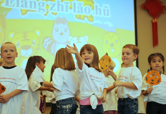 图片1-5美国亚大孔院第三届中国文化节暨孔院日开幕式会场-用中文表演儿歌两只老虎