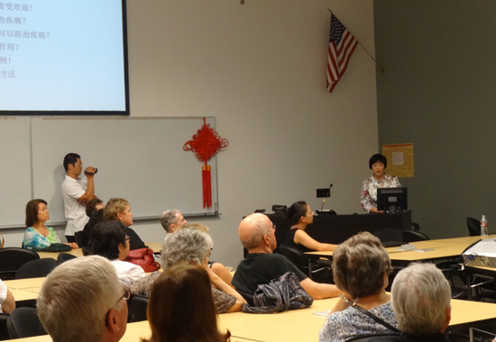 图片4-1美国亚大孔院第三届中国文化节暨孔院日--河南中医药大学著名养生学专家韦大文教授在夏季之荷韵健康讲座会场