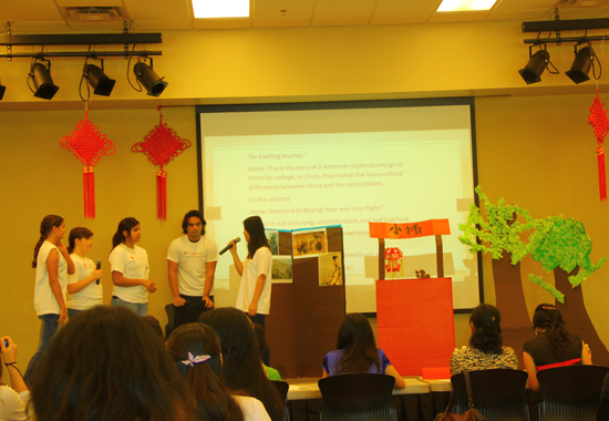 图片2-2 美国亚大孔院第三届中国文化节暨孔院日开幕式--汉语比赛现场美国中学生的中文话剧表演