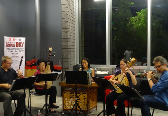 图片6-1 美国亚大孔院第三届中国文化节暨孔院日音乐会以亚利桑那大学紫竹乐团合奏的《平湖秋月》开场