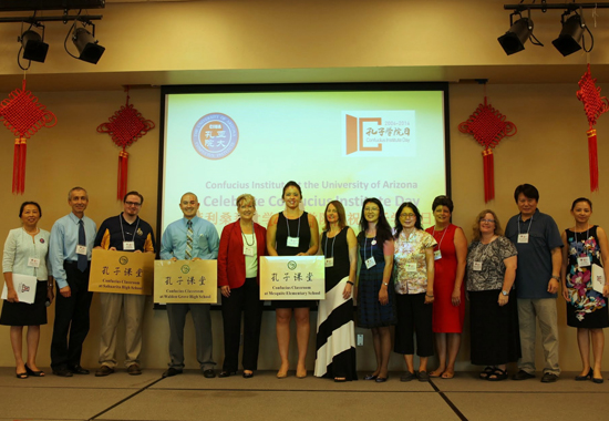 "世界上最美最美的是月亮,比月亮更美更美的是你……",亚利桑那大学孔子学院(简称亚大孔院)第三届中国文化节暨庆祝孔子学院成了十周年中国文化系列活动的闭关之作《中国之夜》音乐会深深地吸引着到场的千名中美观众。"最美的是你、最美的是你、最美的是你",深情地演唱,句句敲击着听众的心坎。此时,海外游子对祖国和亲人的真切思念与中美文化交流的水乳之情相应,怎能不让人动容:音乐无国界,文明相依恋;至此,为期八天的亚大孔院第三届中国文化节暨庆祝孔子学院成立十周年庆典画上了圆满成功的句号!