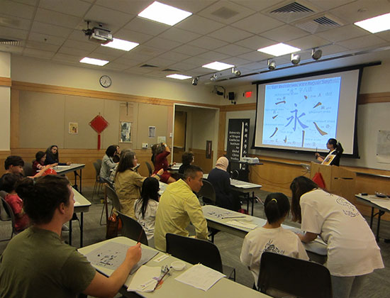 9月30号,大学小城迎来秋季学期的第二日,俄勒冈大学孔院为大学和社区奉上了准备已久的文化盛宴,庆祝全球孔院成立十周年、俄勒冈大学孔院揭牌五周年,丰富多彩的孔院日活动持续三天,精彩纷呈。系列活动的首场安排在尤金市中心的公共图书馆(Eugene Public Library),吸引了众多来自不同领域的美国友人。