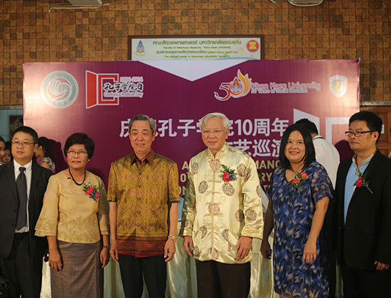 据悉,此次活动是国家汉办为庆祝孔子学院建立十周年到来而进行的泰国巡讲、巡演文化活动,10月1日孔敬大学孔子学院还举办了题为“21世纪海上丝绸之路”为主题的系列文化讲座,讲座由来自北京大学外国语学院傅增有教授、北京大学国际关系学院吴杰伟博士和来自中国社会科学院亚洲太平洋研究所所长周方冶博士主讲,来自孔敬地区各高校及中小学的140余位中外汉语爱好者齐聚一堂,歆享了本系列以“海上丝绸之路”为主题的文化饕餮盛宴。