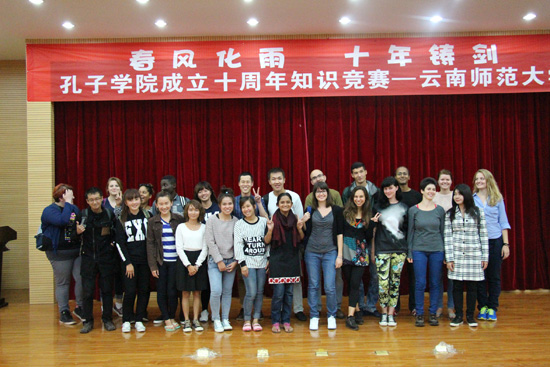 作为拥有云南省首批海外建立孔子学院高校、汉语国际推广师资培训基地(昆明)和招收在华留学生示范基地等多重身份的高校,云南师范大学为了庆祝孔子学院成立十周年,在近一个月时间内举办了一系列孔院文化活动:邀请了前任泰国清迈大学孔子学院院长、云南师范大学国际交流处副处长杨叶华进行有关孔子学院的专题知识讲座;组织归国孔院志愿者进行“孔院工作见闻与感受”为主题的座谈;组织学生进行孔子学院知识竞赛、插花比赛,各项活动均受到了中外学生的积极参与。