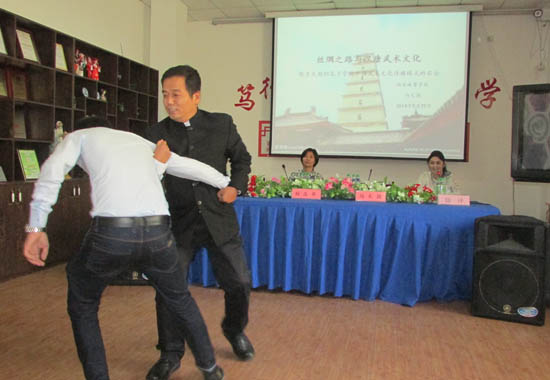 本次研讨会主要以"塔吉克斯坦国立民族大学孔子学院中国武术文化传播模式"为题展开讨论。西安体育学院武术系主任马文国以"丝绸之路与汉唐武术文化--塔吉克斯坦孔子学院中国武术文化传播模式的启示"为题,进行了一场精彩的报告。