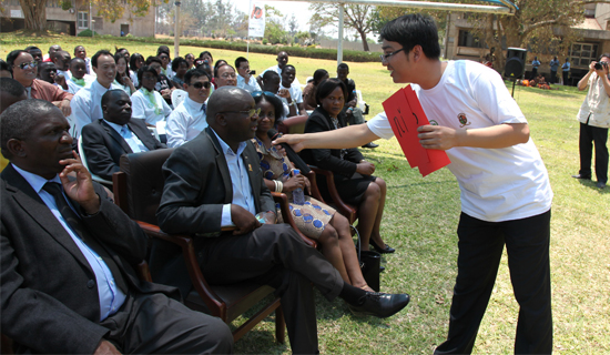 出席活动的中方嘉宾有:中国驻赞比亚大使杨优明先生及夫人、政务参赞潘庆江先生、政治部主任王南麟女士及中国援赞医疗队、军医组和中资机构的领导;赞方嘉宾有:赞比亚教育部官员、赞比亚大学理事会主席叟尔女士、代理副校长穆娃丝教授、副副校长皮瑞教授、教务长阳巴阳巴先生及各院系和部门的代表。新华社、华侨周报、赞比亚国家电视台等中外媒体也纷纷前来拍摄报道。中方院长何懿教授、外方院长卡兰迪博士主持了整个活动。杨大使、赞大理事会主席叟尔女士、代理副校长穆娃丝教授分别致辞。