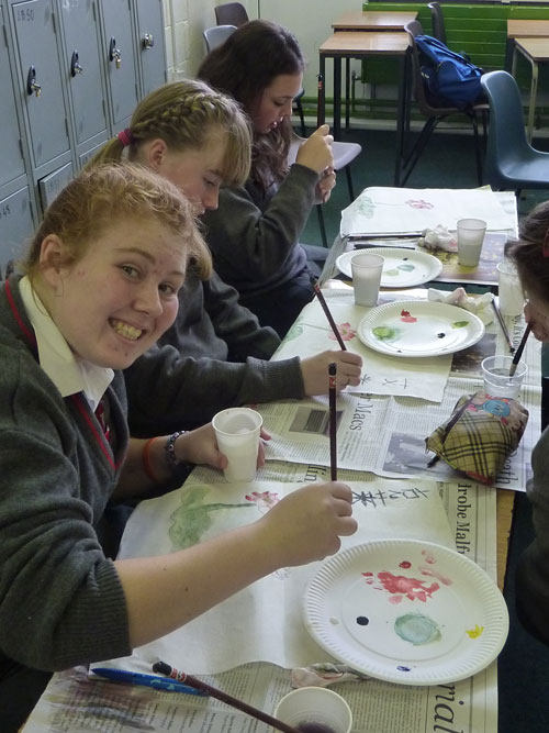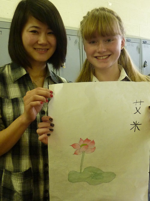 都柏林大学孔子学院与罗丽托女中合作,于2010年3月26日建立了爱尔兰第一所孔子课堂。目前,已有四个年级近100名学生在那里学习汉语。此次在该孔子课堂举办的中国画文化体验活动,教给学生们的是工笔画法。工笔画对画材的要求比较严格,工序相对复杂,加上外国学生完全没有国画基础,教授工笔画成为一个不小的挑战。课堂上,学生们用一个半小时跟着老师完成了一幅工笔荷花图。很多学生具有绘画天赋,虽然是第一次接触中国工笔画,但线条和用墨都掌握得十分出色,令人赞叹。课程结束后,学生们对自己的作品爱不释手,小心地捧着,生怕颜色被蹭掉。