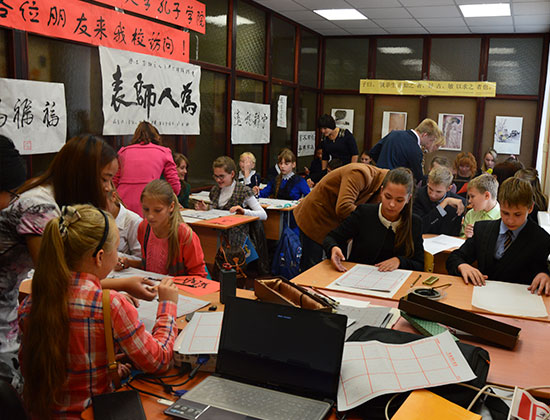 中国书法艺术是世界上独具魅力、广受海内外书法爱好者喜爱的中华瑰宝之一。在书法体验现场汇集了大批中俄体验者。他们一边仔细地聆听老师的精彩讲解,一边认真地临摹书法的笔法。中俄书法爱好者共同学习,不断交流,切实加深了中俄两国人民深厚的情谊。