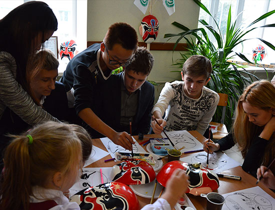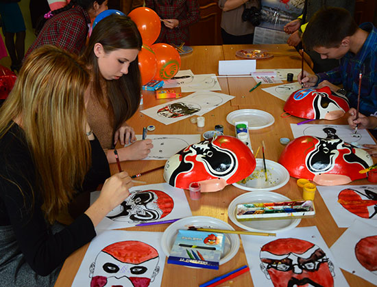 阿穆尔国立人文师范大学孔子学院京剧脸谱彩绘体验现场1