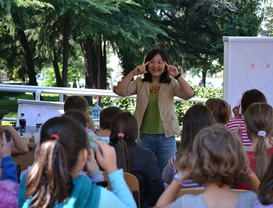 活动期间,孔子学院举办了为期三天的中文体验课,吸引了马其顿中小学和大学生300余人参与,共开了18个班次。课程由孔子学院张敏老师和本土志愿者教师讲授,每次课约二十分钟。老师在课堂上和学生们亲切互动,讲授了“你好”、“再见”、“谢谢”、“对不起”等中文常用词语和数字。学生们表现出了空前的兴趣和积极的参与热情,在极短的时间里轻松愉快地学会了“鼻子”、“嘴巴”、“眼睛”、“耳朵”、“头发”、“脸”、“眉毛”等词语。整个中文体验课堂气氛活泼有序,吸引了大批马其顿民众围观,学生和家长纷纷报名学习汉语。