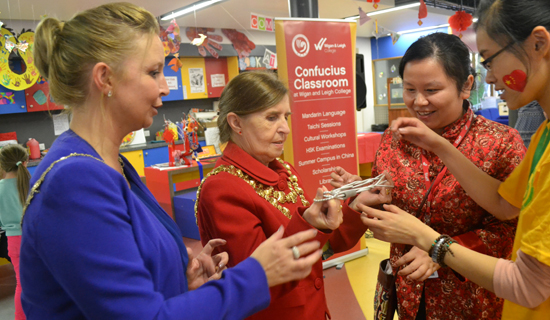 在与威根少年宫共同举办的孔子学院十周年庆典上,英国威根雷学院孔子课堂邀请到威根市市长Phyll Cullen携其女儿Trish Cullen共同出席活动并致辞。Phyll Cullen女士是威根市今年新上任的市长,她的出席使孔子课堂在当地有了更大的影响力。威根媒体专门对这次活动进行了报道,威根雷学院更将市长参加活动的实况在学院首页进行了专题报道。