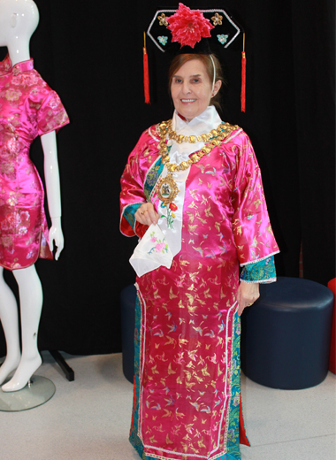 在传统游戏环节,市长和女儿还与志愿者及前来参加的市民一起体验了翻绳等中国传统小游戏。最让她感兴趣的还是中国传统服装试穿的环节。在工作人员的介绍下,市长了解了各式各样的民族服装,还主动要求穿上中国的格格装,带上头饰,拿上手绢,她对这样的衣服爱不释手,对中国的传统文化满是赞许。