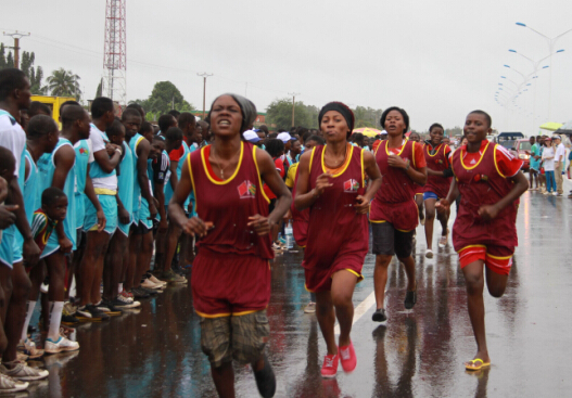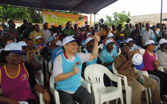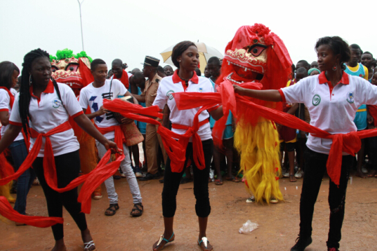 2014年10月11日上午,在中国援建多哥的平坦宽阔的洛美绕城公路上,一声清亮的发令枪响回响天际,多哥青年马拉松比赛正式开始。在中国驻多哥大使刘豫锡、多哥总统府办公厅主任、基础发展与青年事务部长多贝(DOGBE)、公共工程与交通部长尼奥法姆(GNOFAM)、农牧渔业部长阿加达奇(AGADAZI)等多名政府成员带领下,数千名多哥青年冲出起跑线,似骏马出栏,自由驰骋,又如洪流奔涌,势不可挡。比赛紧张激烈,参赛者们你追我赶,加速向前。对于多哥青年来说,这不仅仅是一场简单的体育赛事,而是中多友谊与友好合作的新篇章。洛美大学孔子学院的学生生龙活虎,盛装登场,以非洲特有的激情和奔放演绎中国狮舞,赢得现场来宾阵阵喝彩,将活动氛围推向高潮。