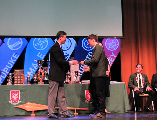 在充满节日气氛的西湖男高大礼堂,同学们怀着兴奋的心情等待学校年度大奖颁奖仪式的举行。身穿颁奖礼服的校长David Ferguson先生和副校长A Reed先生在礼堂门口欢迎王鲁彤大使、牛清报总领事及其随行教育官员陈跃参赞和房东波领事、孙云鹏先生等。作为主办方代表,奥克兰孔院副院长孟金蓉博士和新西兰教育部国际语言处汉语顾问王宇博士也陪同出席了颁奖仪式。