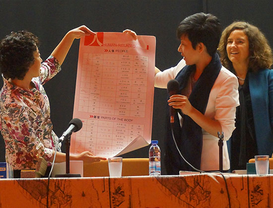 欢声笑语过后,朱丽院长和Teresa院长代表里斯本大学孔子学院向圣·托马斯学校捐赠教学材料,这也是本次“中国日”活动的重头戏,里斯本大学孔院共计捐赠了教材和练习册120余本,有声挂图、字典、识字卡片、玩具等教辅材料几十个,为孔子课堂的汉语教学提供了极大的帮助。