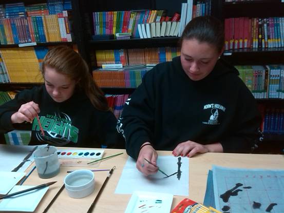 10月15日中午,在大学生活动中心的孔子学院奖学金宣传栏(Confucius Institute Scholarship Fair),余承法、张昆群两位教师耐心回答学生的咨询,学生助理Andy Hayes不失时机介绍孔子学院和汉语水平考试等情况。当天下午的中国水彩画课堂上,酷爱中国书画的市民Bob Flaig早早来到课堂,跟学生们一起听余承法副教授讲解如何画墨竹,他们强烈的求知欲望和认真的学习劲头令孔子学院员工感动和鼓舞。