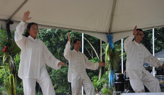 巴哈马大学孔子学院也参加了此次国际文化节,并报名参演节目,中方院长周幼华和张丽娟等老师表演了二十四式简化太极拳,赢得各国游客纷纷驻足观赏并报以热烈的掌声,巴哈马国家电视台及一些著名报社也对此进行了报道。表演结束后,有不少拿骚当地的居民纷纷来孔子学院展台咨询巴哈马大学孔院是否有太极拳培训班,表达他们想学练太极拳的愿望。