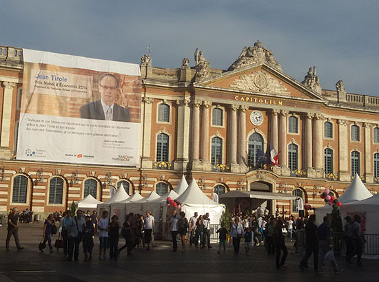 2014年10月19日,法国图卢兹市政府前的Capitole广场上,作为法国第二大学城的图卢兹市举办了“图卢兹大学园区国际大学生日” 活动。这项活动由图卢兹市政府组织,图卢兹大学联盟牵头并邀请了刚刚获得诺贝尔经济学奖的法国图卢兹第一大学Jean TIROLE教授和图卢兹市领导一起参与出席,图卢兹孔子学院也应邀参与了活动的举办。