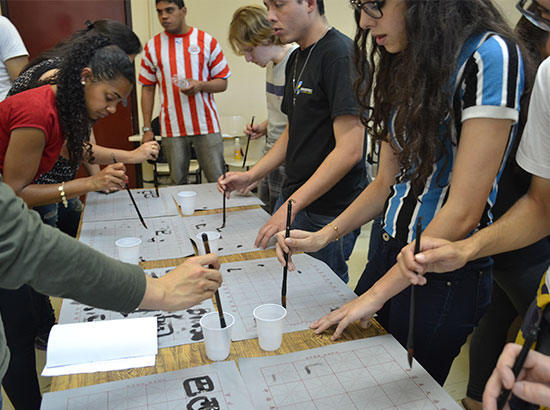 23日,UFRGS孔子学院开办“中国书法艺术体验课”活动。体验课分为三个部分,中国汉字简介:象形、指示、会意、形声等基本的造字法及演变。中国中国传统书法艺术介绍:从篆书、隶书、楷书、行书、草书五种书体展开,分别介绍每种字体的特点、代表作品及文化渊源。最后,书法现场实操环节:学生在了解中国汉字,中国书法的基础上,拿起毛笔,体会中国书法的奥妙。