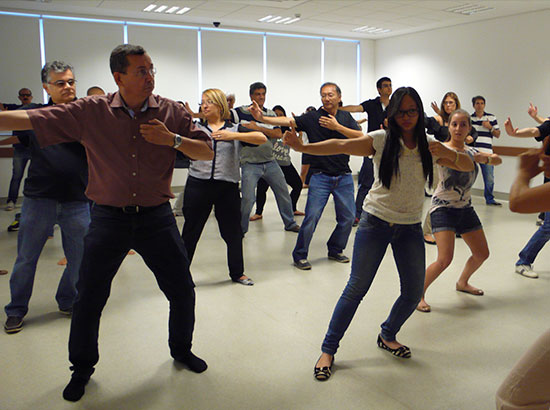 巴西FAAP商务孔院“孔子学院日”系列文化活动在10月4日走进Riberão Preto (黑河市),与当地民众共享中华文化的精彩。“孔子学院日”文化活动以孔子学院经理费珊珊的“中国概述”讲座开场,之后中方院长项洁为当地民众带去中国茶道和八段锦。八段锦讲座把大家带入神秘的中华养生之道。茶道讲座使大家在学习泡茶的同时,品味并领略龙井、祁红、铁观音的不同。