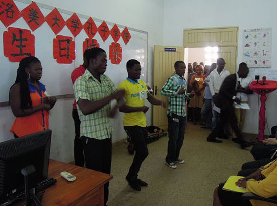 2014年10月29日,洛美大学孔子学院举行孔院成立五周年庆典。刘豫锡大使夫妇、霍天云政务参赞、洛美大学副校长贝巴(KPEGBA)女士、孔子学院外方院长佳思美(CTHASSIM)女士、中方院长苟志光及该院全体师生100余人出席活动。