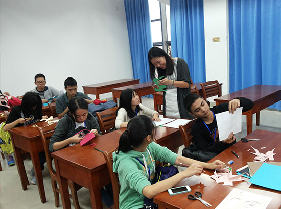 秋令营学员们体验中国剪纸