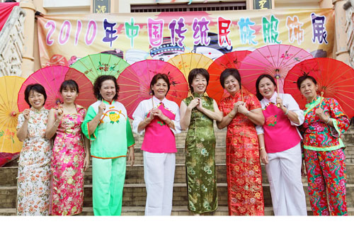 此次中国传统民族服饰展主要体现三大特色:一是服饰种类齐全、多姿多彩,身着传统服饰的学员们就像是中华民族大家庭的一个缩影;二是参加者人数多、年龄层次跨度大。三十多名学员积极报名参加,其中包括了老中青幼各个年龄段,年龄最大的68岁,最小的只有3岁。三是形式别具一格,在队伍行进中展示各种服饰,音乐与舞蹈动作搭配,现场解说与合影留念结合,形象生动,自然随和,印象深刻。
