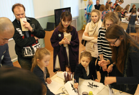 俄罗斯民众踊跃参加“大师班”,尝试中国书法