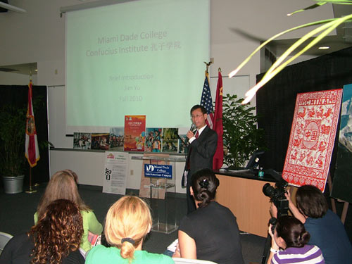 为了推广汉语、激发学生对中华文化的兴趣,2010年11月18日,迈阿密达德学院孔子学院在分校Interamerican校园举办了“中国日——体验上海2010世博会”活动。