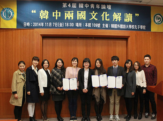 11月7日,由韩国外国语大学孔子学院主办的第四届中韩青年论坛在韩国外国语大学本馆拉开帷幕,出席本次论坛的评委有韩方副院长和中方教师。