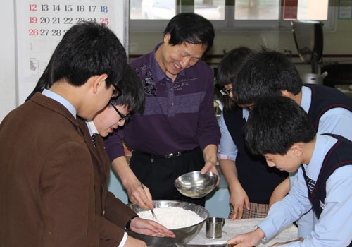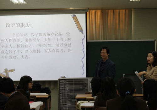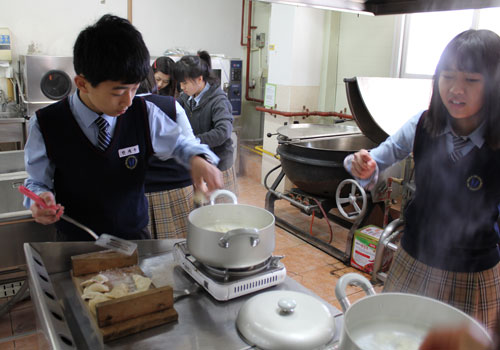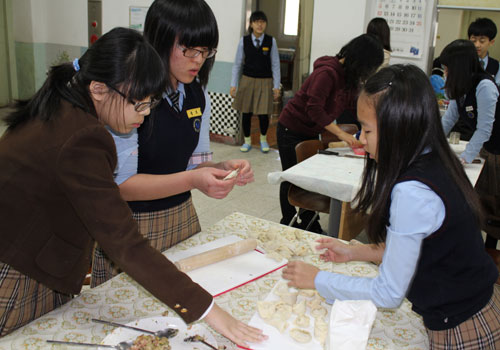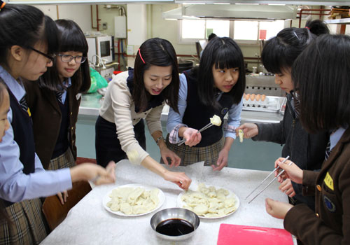 2010年12月4日华山中学孔子课堂中国语快班的16名同学,在学校的家政技术教育基地,实实在在的体验到了中国的饮食文化。首先,老师以图片的形式给学生讲解饺子的来历、中国人吃饺子的习俗、饺子的做法——和面、伴馅儿、擀皮儿、包饺子、煮饺子等。简单介绍中国12大菜系中的川菜及北京烤鸭的特点等。接着,同学们分组包饺子,看哪个组擀的圆、包的好,包的快又好看,整个过程紧张有序,活动在愉快的氛围中结束。