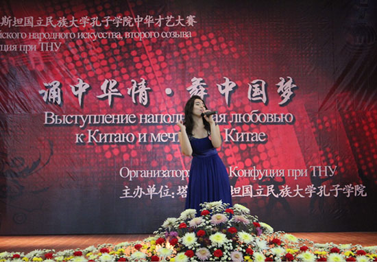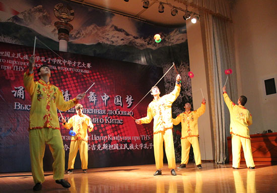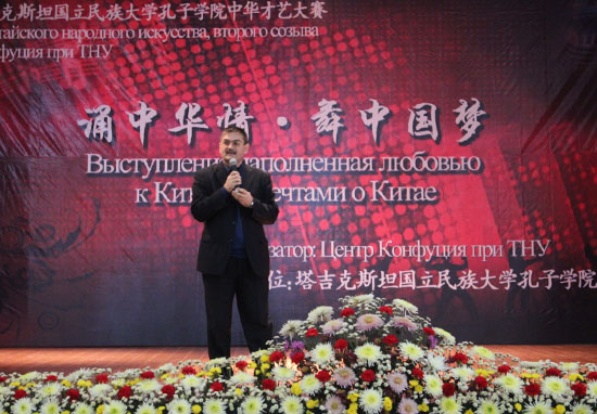 11月26日,塔吉克斯坦国立民族大学孔子学院在礼堂举办了“诵中华情·舞中国梦”第二届中华才艺大赛。最终经过激烈角逐,塔斯拉夫大学汉语专业的伊力宏和国立民族大学汉语专业的胡昊杰以出色的舞台表现力夺得冠军。