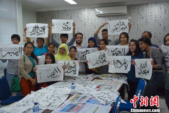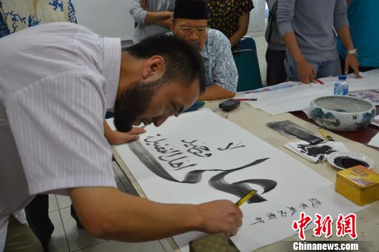随着中国和印尼关系的不断加深,印尼民众对中国阿文书法的兴趣与日俱增。为了让印尼民众对中国阿文书法有一个更加直观清晰的认识,21日,印尼阿拉扎大学孔子学院举办了“阿拉伯文书法艺术”交流会,邀请了中国宁夏回族自治区非物质文化遗产项目“阿拉伯文书法艺术”的传承者,穆罕默德·艾布伯克勒·张艾布,张子英先生进行现场教学。