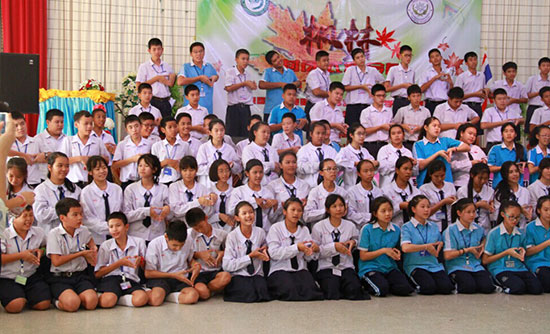 在泰国版广场舞《小苹果》的带动下,曼松德孔子学院教师又配合手语舞蹈动作,将中国歌曲《感恩的心》等纳入广场舞。同学们把感恩的心送给曼松德孔院的老师,感谢他们的辛勤劳动,为泰国中学生的校园生活增添了一抹艳丽的色彩。今天恰逢感恩节,孔院老师嘱咐同学们,回家后将这首歌曲连同舞蹈,一同表演给父母,表达对父母的感恩之情。