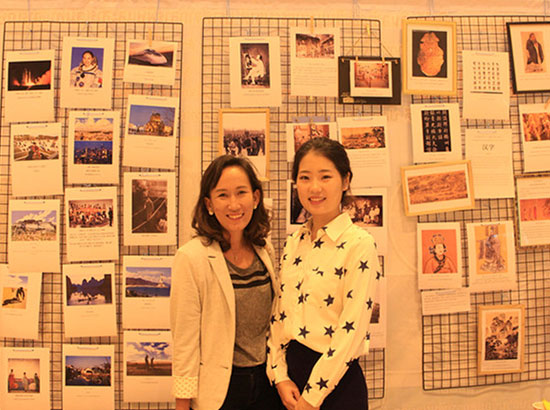 照片展览前合影