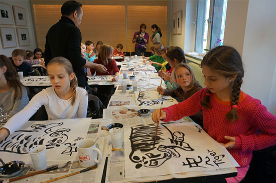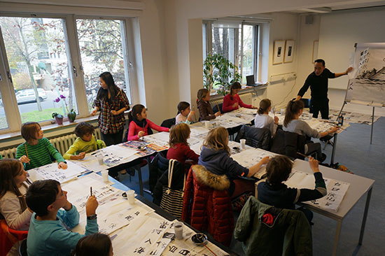 11月22日,18名热爱绘画的“小画家”齐聚法兰克福孔子学院,跟随著名画家陈江洪走进中国画和书法的世界。