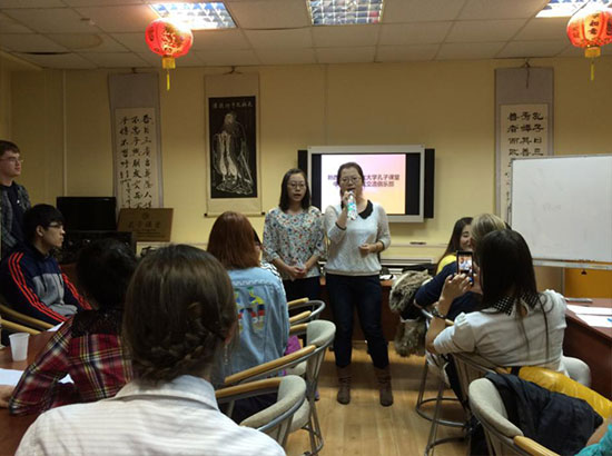 随后,中俄双方同学分组进行了关于中国和俄罗斯传统节日的热烈讨论,俄罗斯学生向中国学生介绍俄罗斯佳节的由来,中国学生则向新朋友讲述“春节”、“中秋节”、“端午节”等中国传统节日的文化内涵和风俗习惯。讨论结束后,每组各派一位中国同学和一位俄罗斯同学进行发言,用对方的语言将自己所了解到的节日、文化、风俗习惯等。