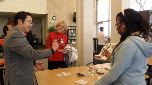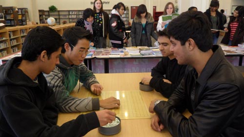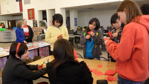三一高中是达拉斯德州大学孔子学院下属孔子课堂所在学校之一,在该校的大力支持下,孔子学院在其图书馆成功举办了中文图书展。此次书展吸引了众多师生利用其课间休息及午饭时间前来阅读与咨询。面对种类齐全,内容丰富的中文图书,同学们十分兴奋。前来参展的同学中有通过夏令营或自助旅游去过中国的,他们“现身说法“,为其他同学介绍中国的灿烂文化和著名景观。书展现场还为师生们准备了剪刀、红纸、笔、墨、纸、砚以及中国象棋、围棋等工具,使他们可以亲自动手,体验中国文化的乐趣。很多同学们都争先恐后,现学现练,不停地向孔院老师请教各种有关中国语言与文化的问题。学区教育外语教学总监巴瓦妮女士、三一高中校长迈克·哈里斯先生以及三一高中外语部主任等领导和教师均到场参观并对孔子学院的支持表示衷心感谢。