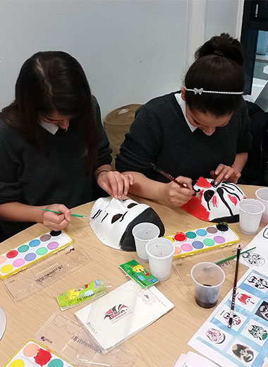 在孔院老师的带领和指导下,大家一道习武术、试剪纸、描脸谱、学书毛笔字、学画水墨画、学跳中国民族舞,同学们乐在其中,极为投入。